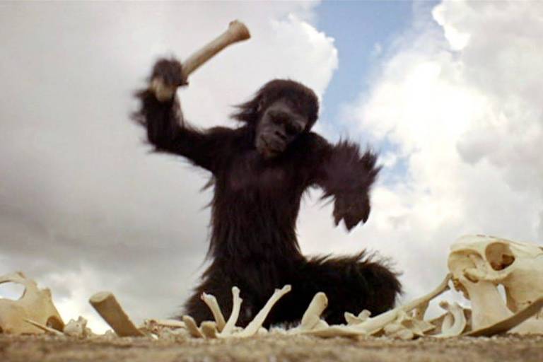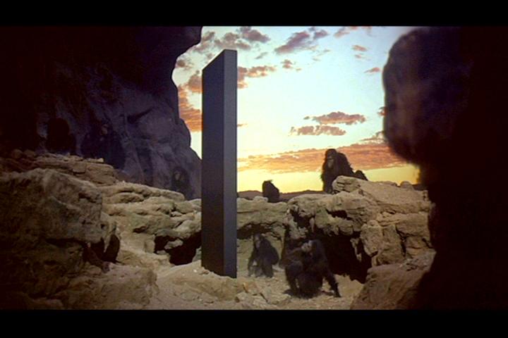 A cena dos macacos: A cena dos macacos em 2001: Uma Odisseia no Espaço mostra a descoberta de uma ferramenta (um osso) após a aparição de um monolito alienígena, simbolizando o início da evolução humana, o domínio da técnica e a capacidade de usar a violência para sobreviver e conquistar território. A cena salta no tempo para mostrar o osso se tornando uma nave espacial, ligando a pré-história ao futuro e mostrando o progresso tecnológico como continuação da evolução inicial.
